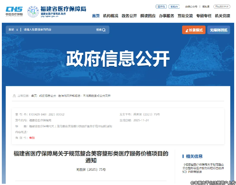 福建省美容整形价格项目将有统一规范,2026年1月15日起执行