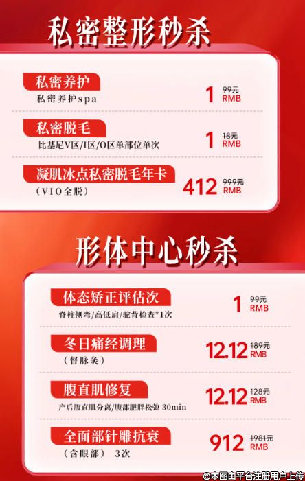 上个月双11没抢到心仪好物?别慌!军大整形年末终极秒杀狂欢盛宴即!将!开!启!年度超低价??错过就得再盼一年数量有限,姐妹们——赶紧冲~