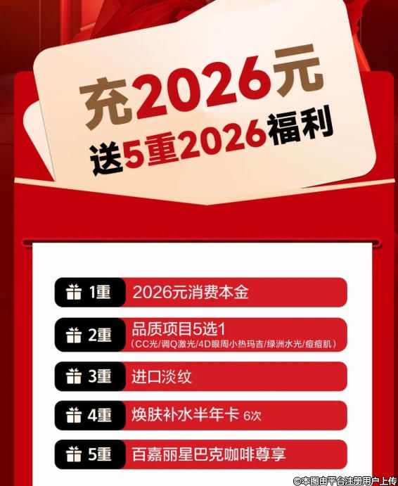新年焕新颜,变美一步轻松到位!百嘉丽倾情推出“2026”新年充值计划,仅需充值2026元,即可解锁五重豪华礼遇,涵盖护肤、美体、健康管理等全方位变美服务,让你由内而外散发自信光彩,新的一年从“头”美到“脚”,美丽不设限!