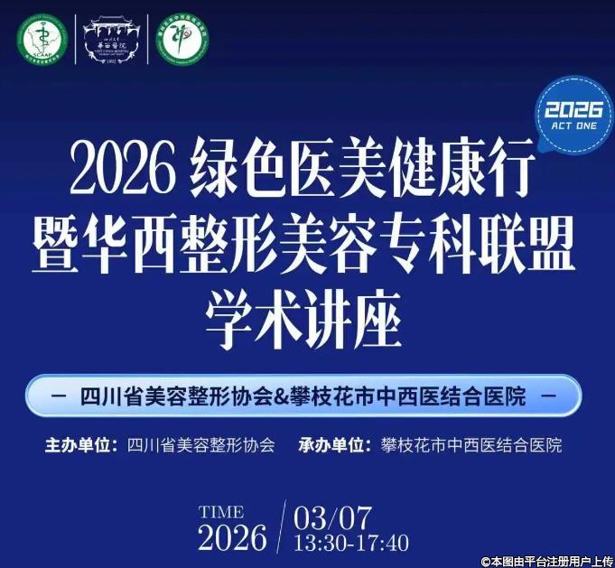 2026年3月7日将要举办2026绿色医美健康行暨华西整形美容专科联盟学术讲座,主办单位:四川省美容整形协会;承办单位:攀枝花市中西医结合医院