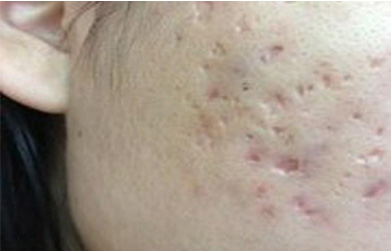 痘坑其实是痤疮凹陷性瘢痕的小名。痘坑的产生,多是由于较重的炎症、挤压或治疗不及时,皮肤全层组织遭到破坏(伤到真皮层了),造成组织缺损。在表皮愈合后,无法再生形成胶原修复皮损,便会留下无法自行消失的凹陷