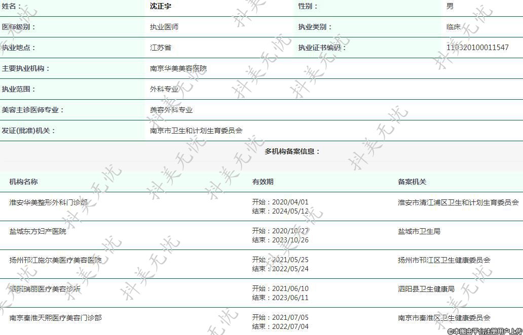 主要执业机构:南京华美美容医院