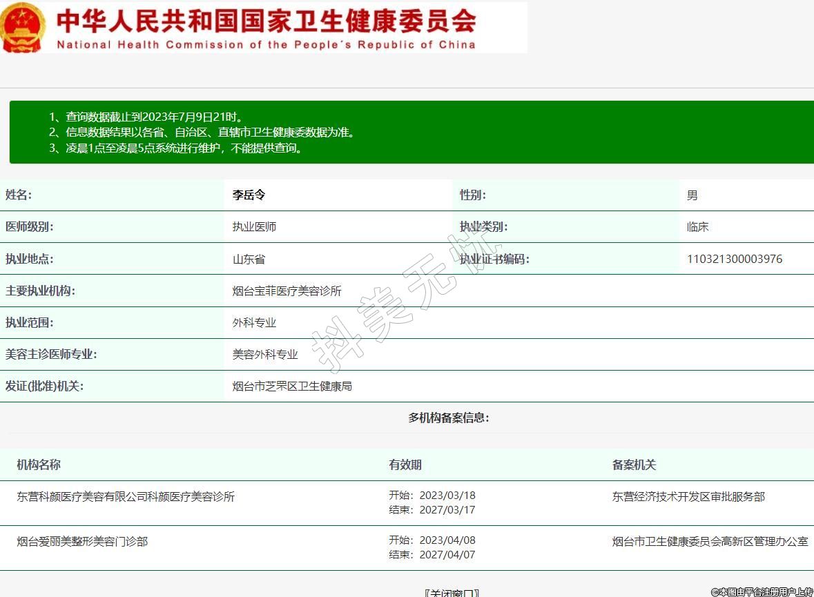 主要执业机构:烟台宝菲医疗美容诊所