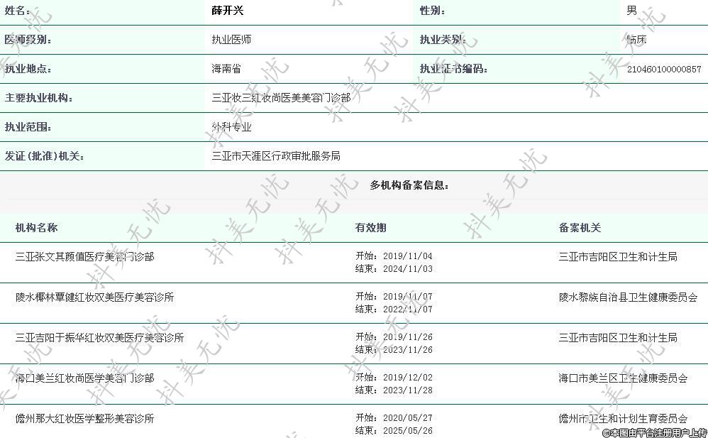 主要执业机构:三亚妆三红妆尚医美美容门诊部