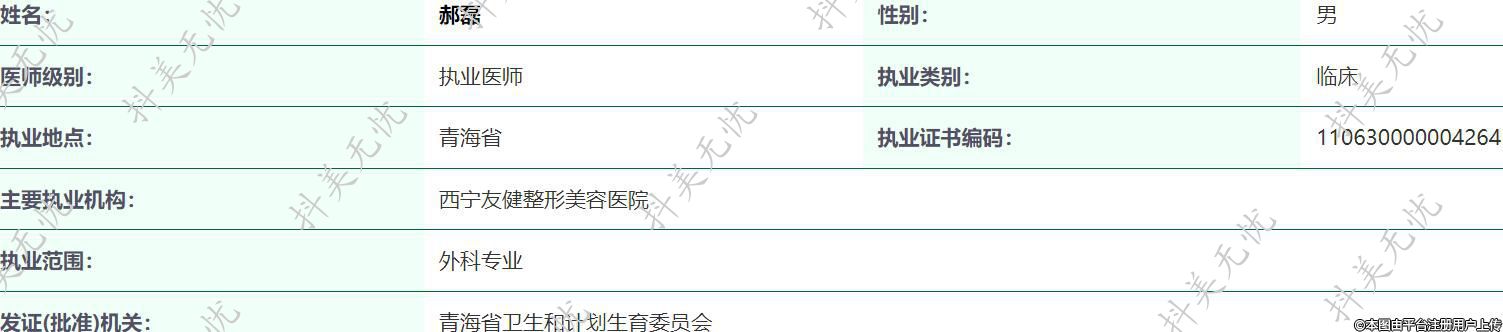 西宁友健医疗美容执业医师