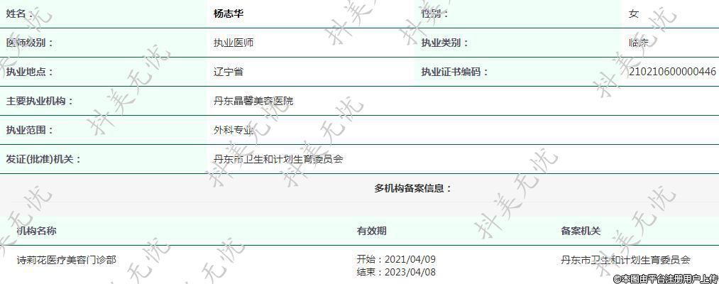 主要执业机构:丹东晶馨美容医院