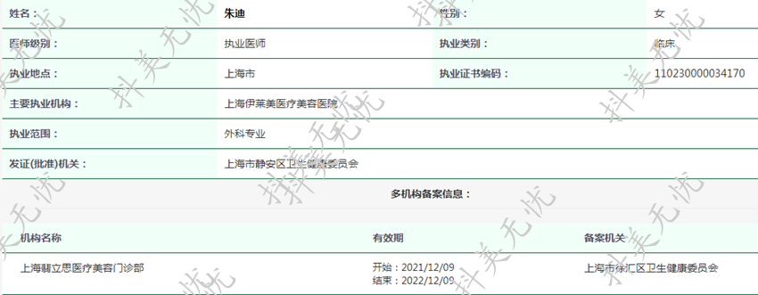 主要执业机构:上海伊莱美医疗美容医院