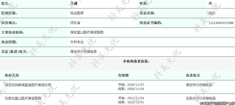 主要执业机构:保定蓝山医疗美容医院