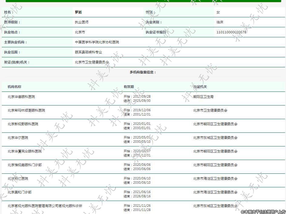 北京茗视光眼科医院管理有限公司茗视光眼科诊所