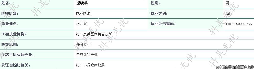 曾就职公立甲等医院,历任卫生部北京中日友好医院整形外科医师、后创办沧州京美医疗整形美容医院,现任京美医疗整形医院院长。