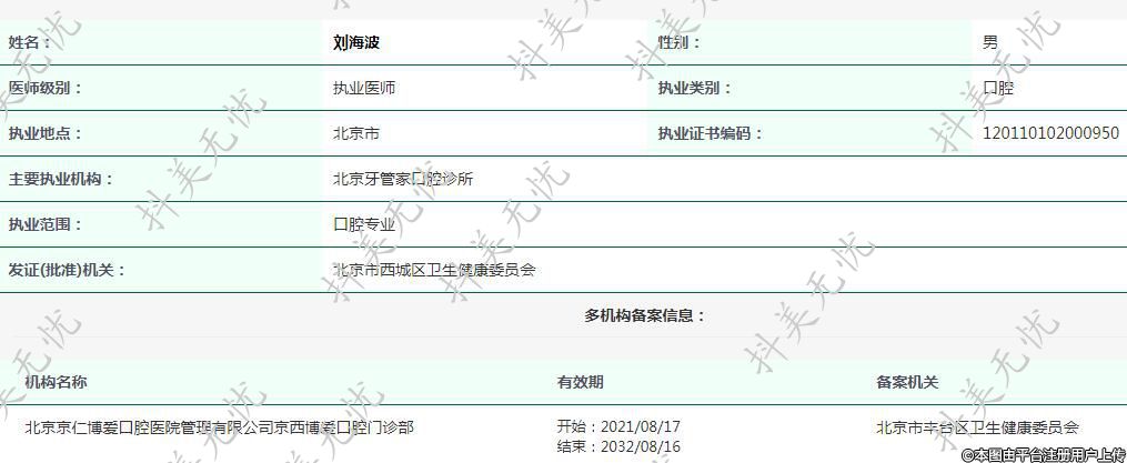 主要执业机构:北京牙管家口腔诊所