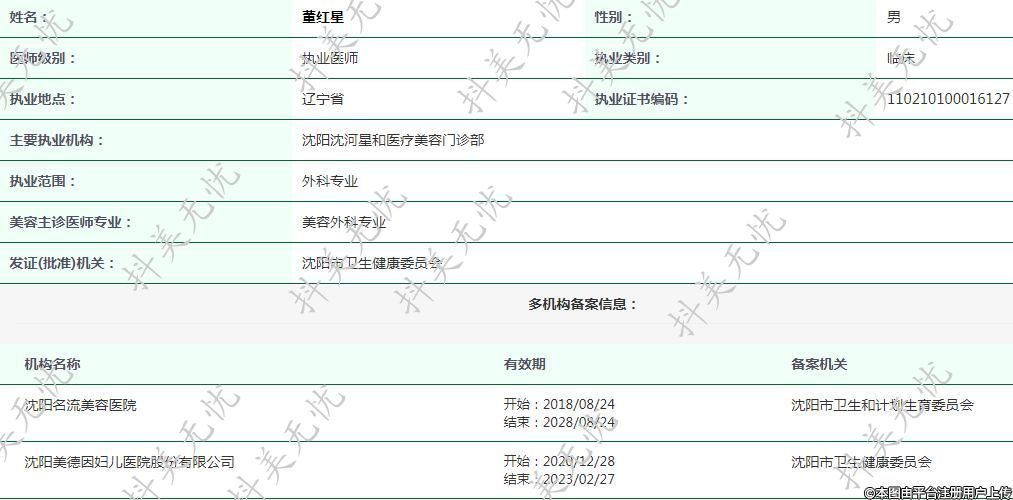 主要执业机构:沈阳沈河星和医疗美容门诊部