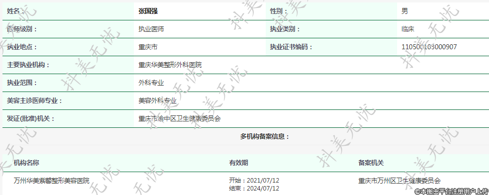 主要执业机构:重庆华美整形外科医院