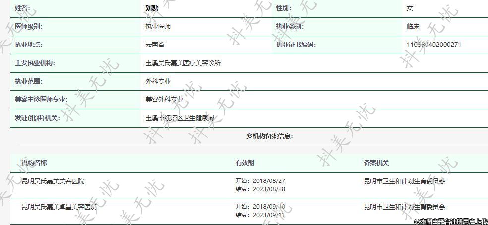 主要执业机构:玉溪吴氏嘉美医疗美容诊所