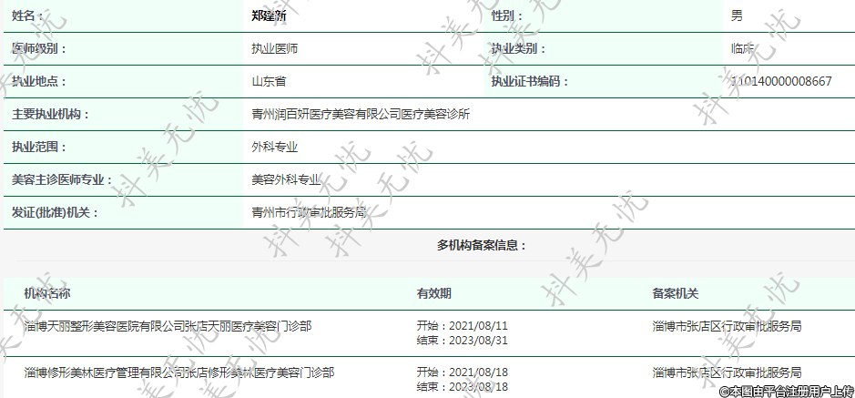 就职于淄博天丽整形美容医院有限公司张店天丽医疗美容门诊部