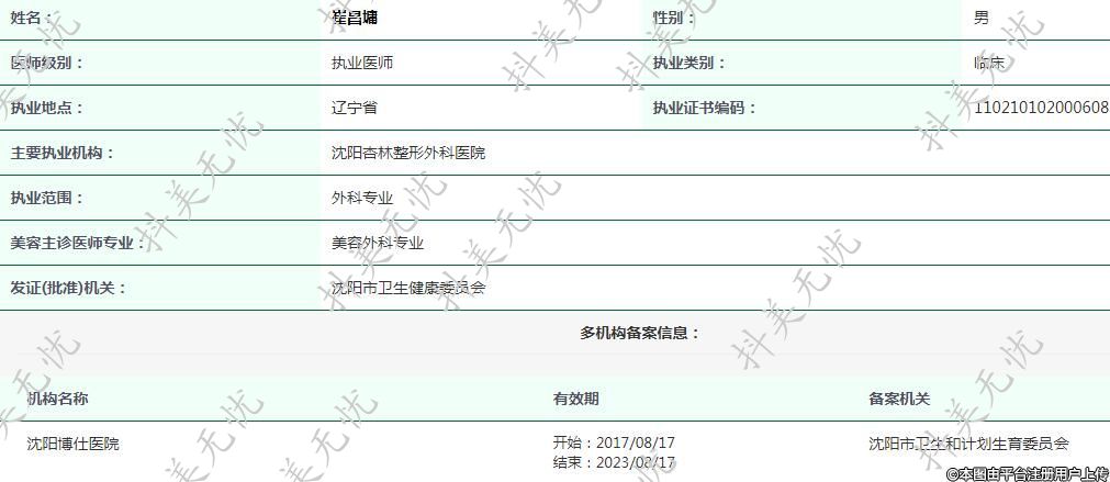 主要执业机构:沈阳杏林整形外科医院