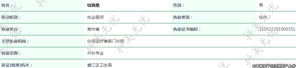 主要执业机构:白领医疗美容门诊部
