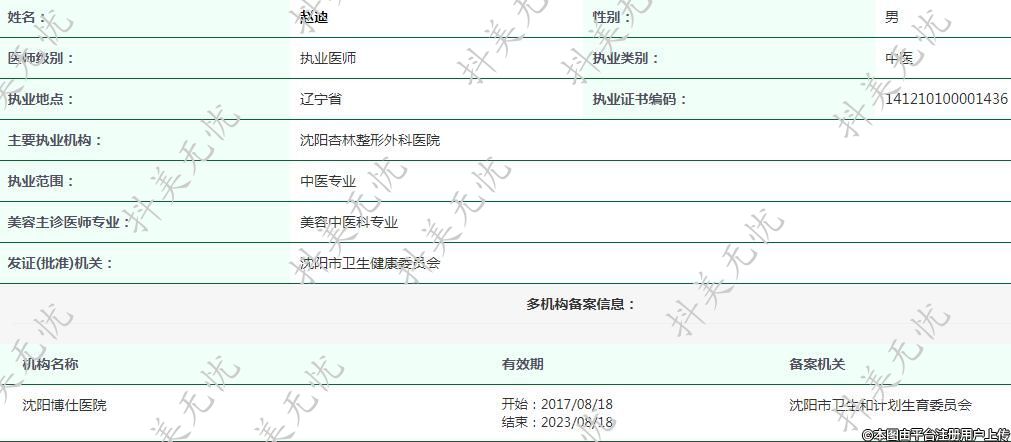 现任沈阳杏林医疗美容整形外科医师。曾多次参加整形美容外科掌术大会,为与会国内外医生做整形手术演示。