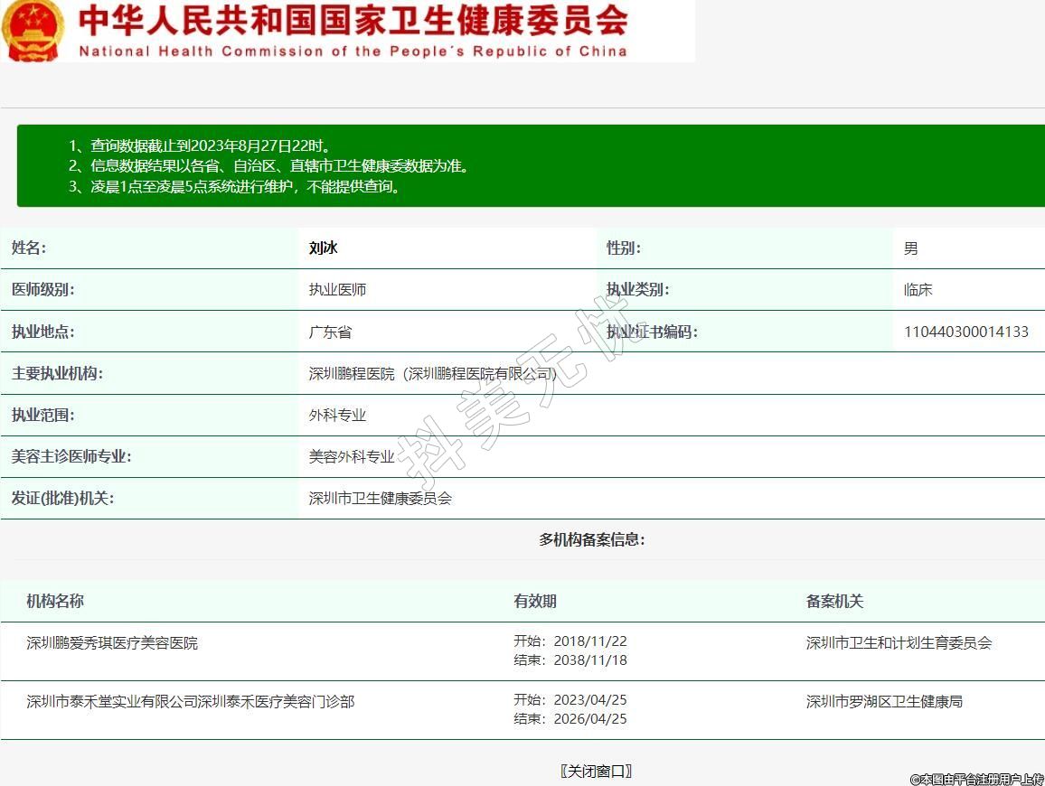 机构名称:深圳市泰禾堂实业有限公司深圳泰禾医疗美容门诊部