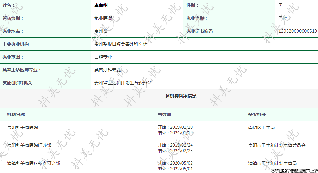 现任贵阳利美康医院执业医师