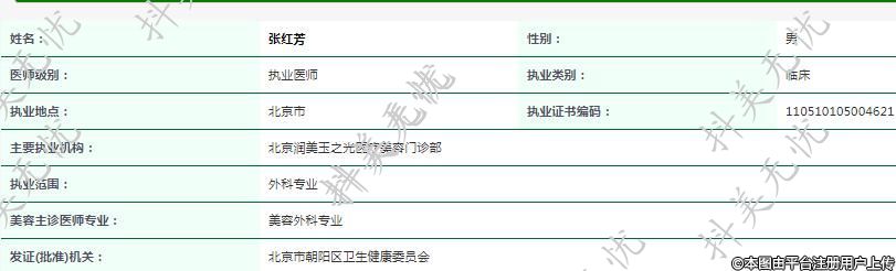 主要执业机构:北京润美玉之光医疗美容门诊部