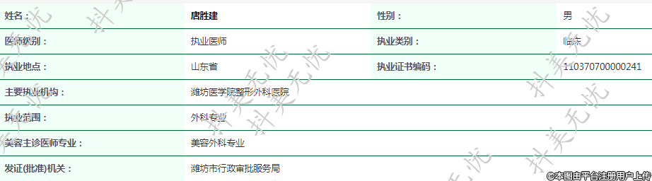 主要执业机构:潍坊医学院整形外科医院
