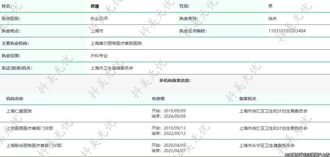 主要执业机构:上海首尔丽格医疗美容医院