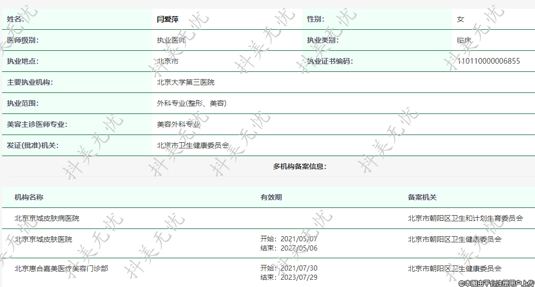 执业范围:外科专业(整形、美容)