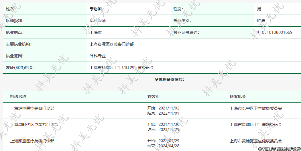 主要执业机构:上海名媛医疗美容门诊部
