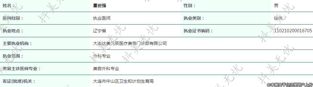 主要执业机构:大连达美元辰医疗美容门诊部有限公司