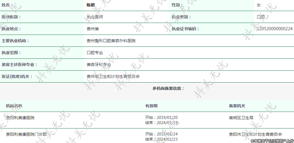 主要执业机构:贵州整形口腔美容外科医院