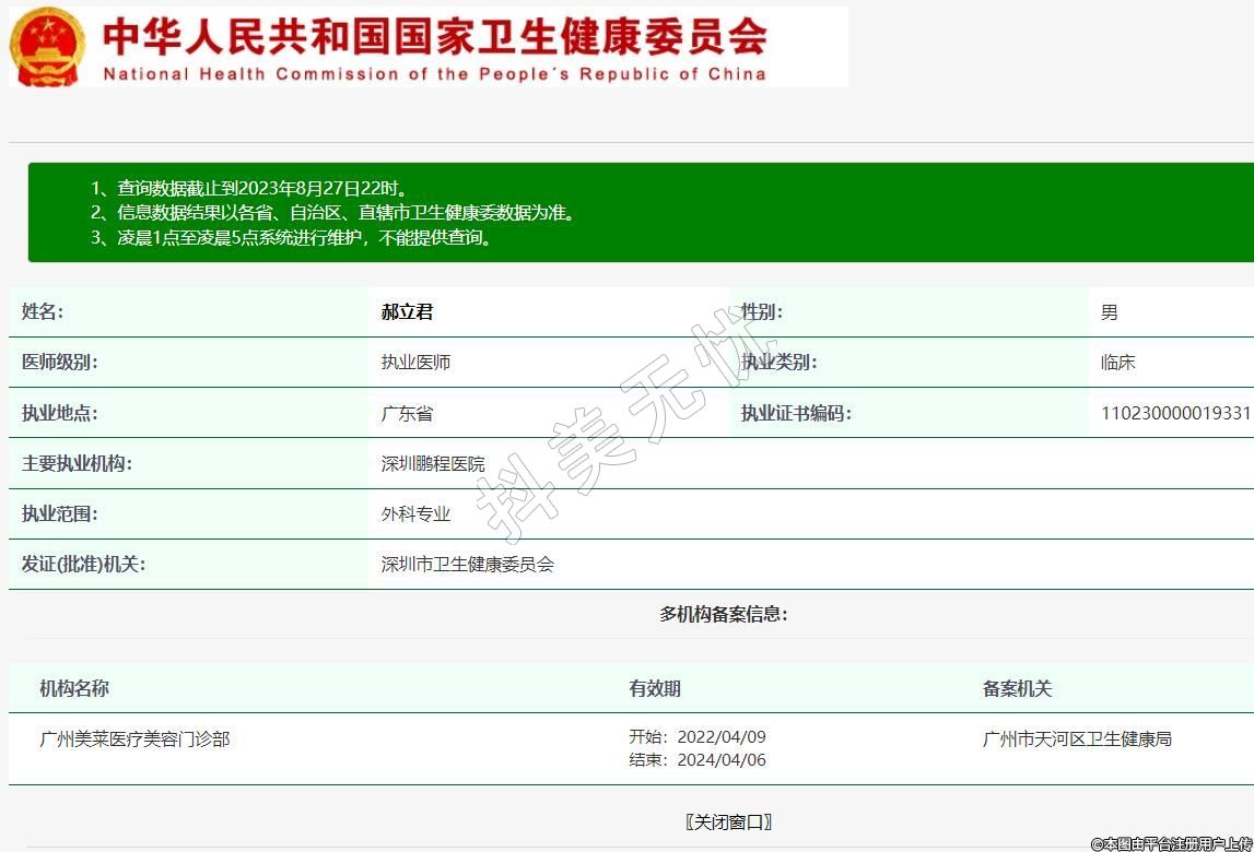 机构名称:广州美莱医疗美容门诊部