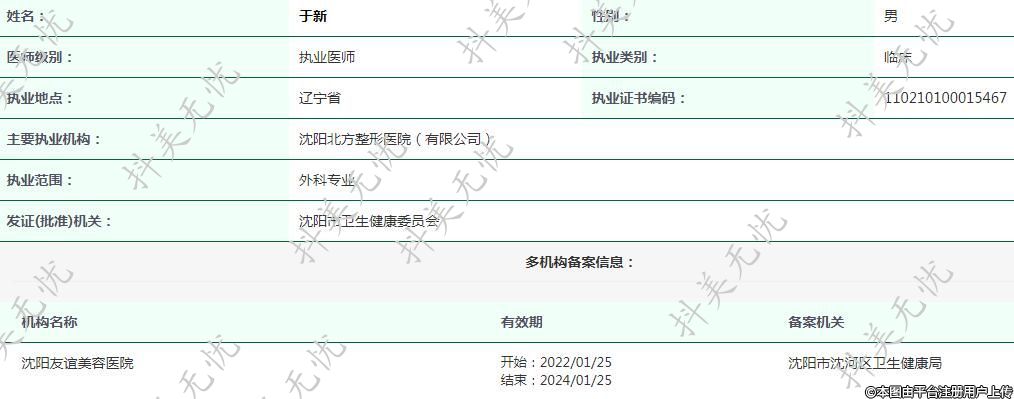 主要执业机构:沈阳北方整形医院(有限公司)