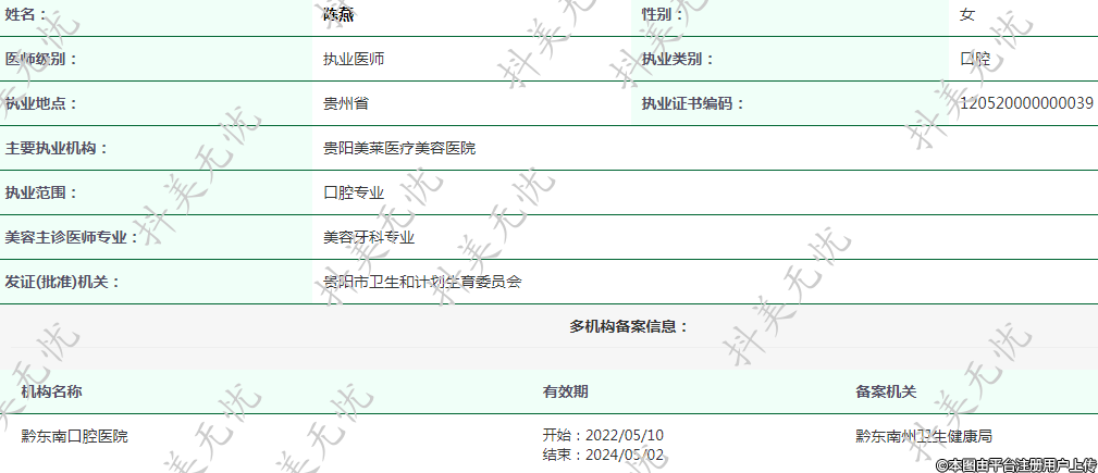 主要执业机构:贵阳美莱医疗美容医院
