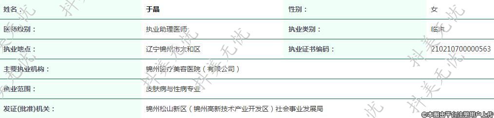 主要执业机构:锦州医疗美容医院(有限公司)
