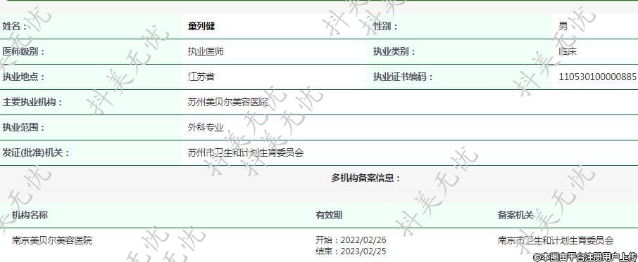 主要执业机构:苏州美贝尔美容医院