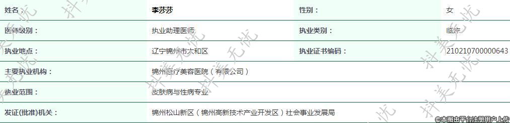 主要执业机构:锦州医疗美容医院(有限公司)