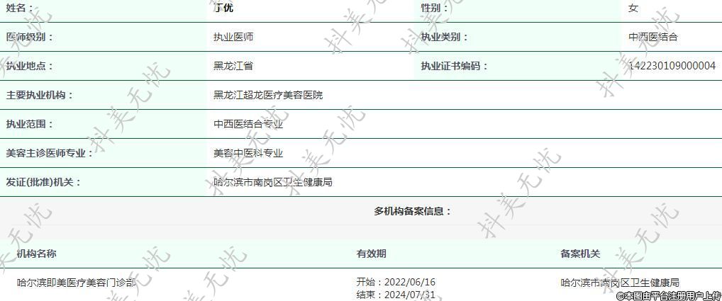 黑龙江超龙医疗美容执业医师