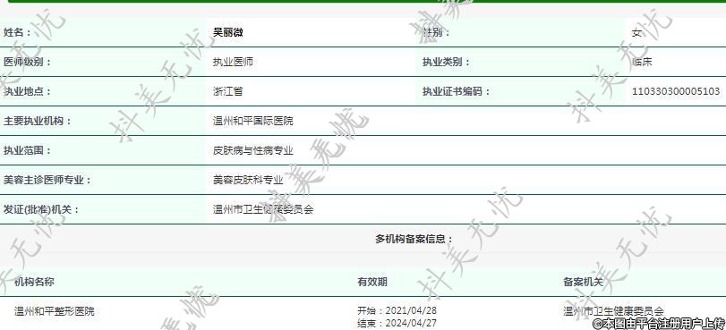 主要执业机构:温州和平国际医院