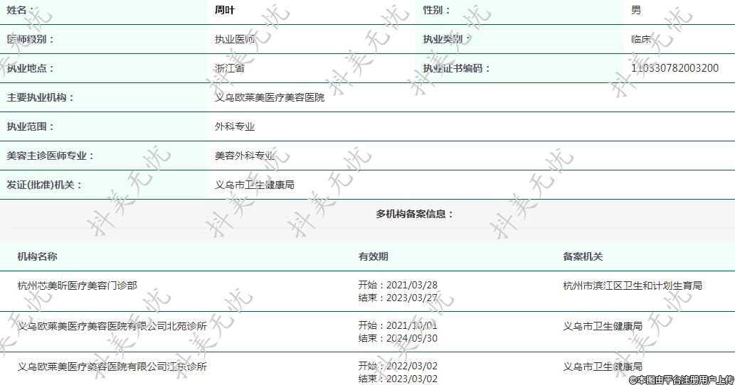 义乌欧莱美医疗美容医院有限公司北苑诊所