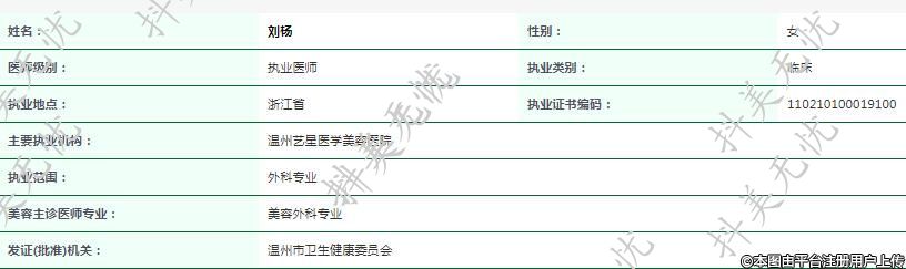 主要执业机构:温州艺星医学美容医院