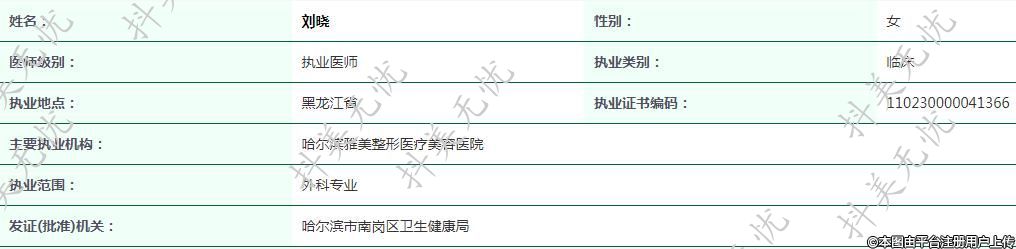 主要执业机构:哈尔滨雅美整形医疗美容医院