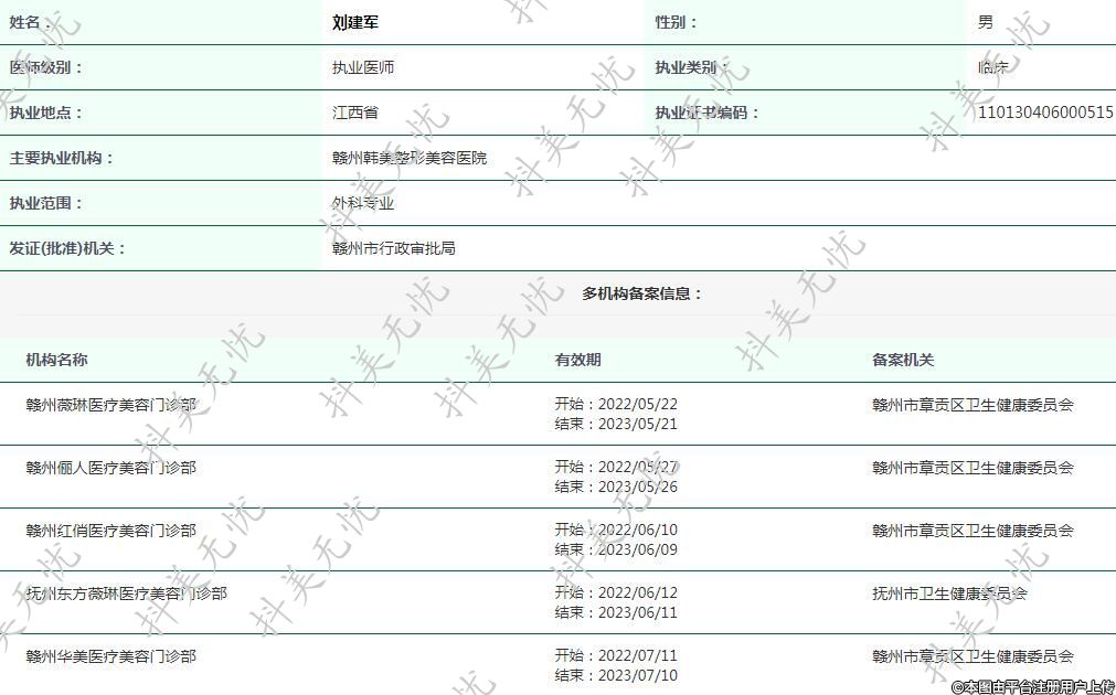 主要执业机构:赣州韩美整形美容医院