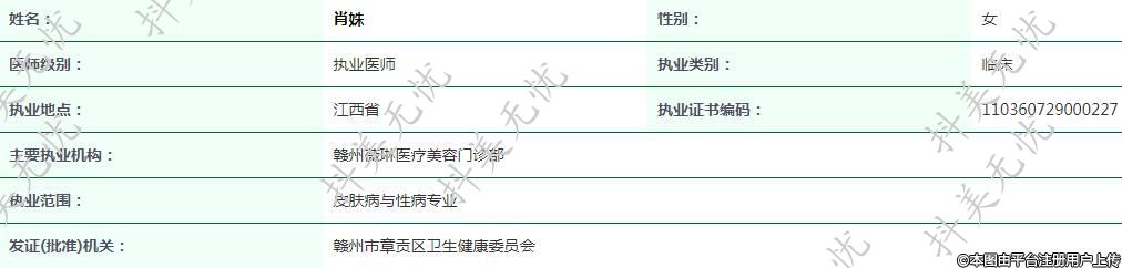 主要执业机构:赣州薇琳医疗美容门诊部