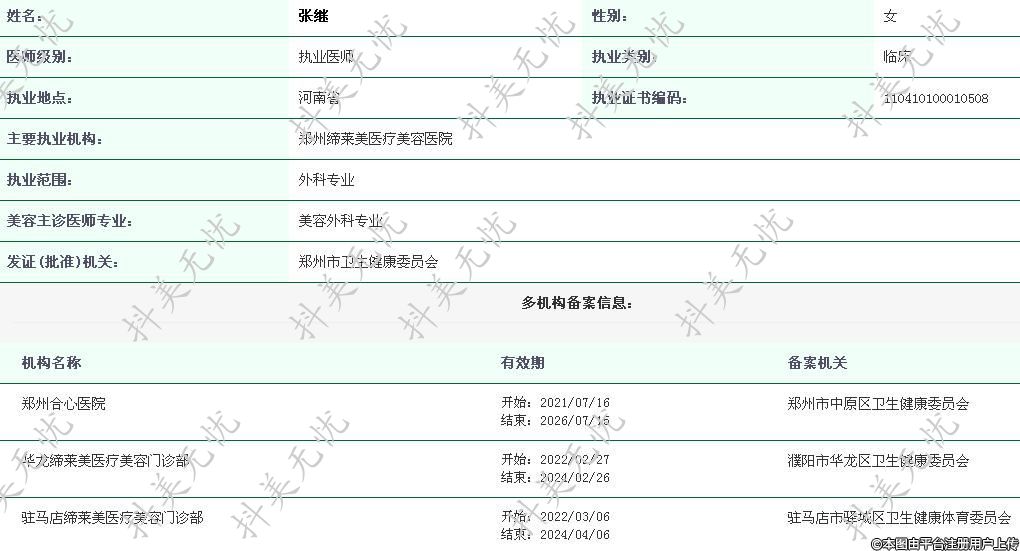 郑州缔莱美执业医师