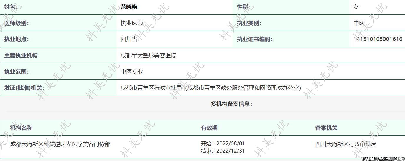 机构名称:成都天府新区臻美逆时光医疗美容门诊部