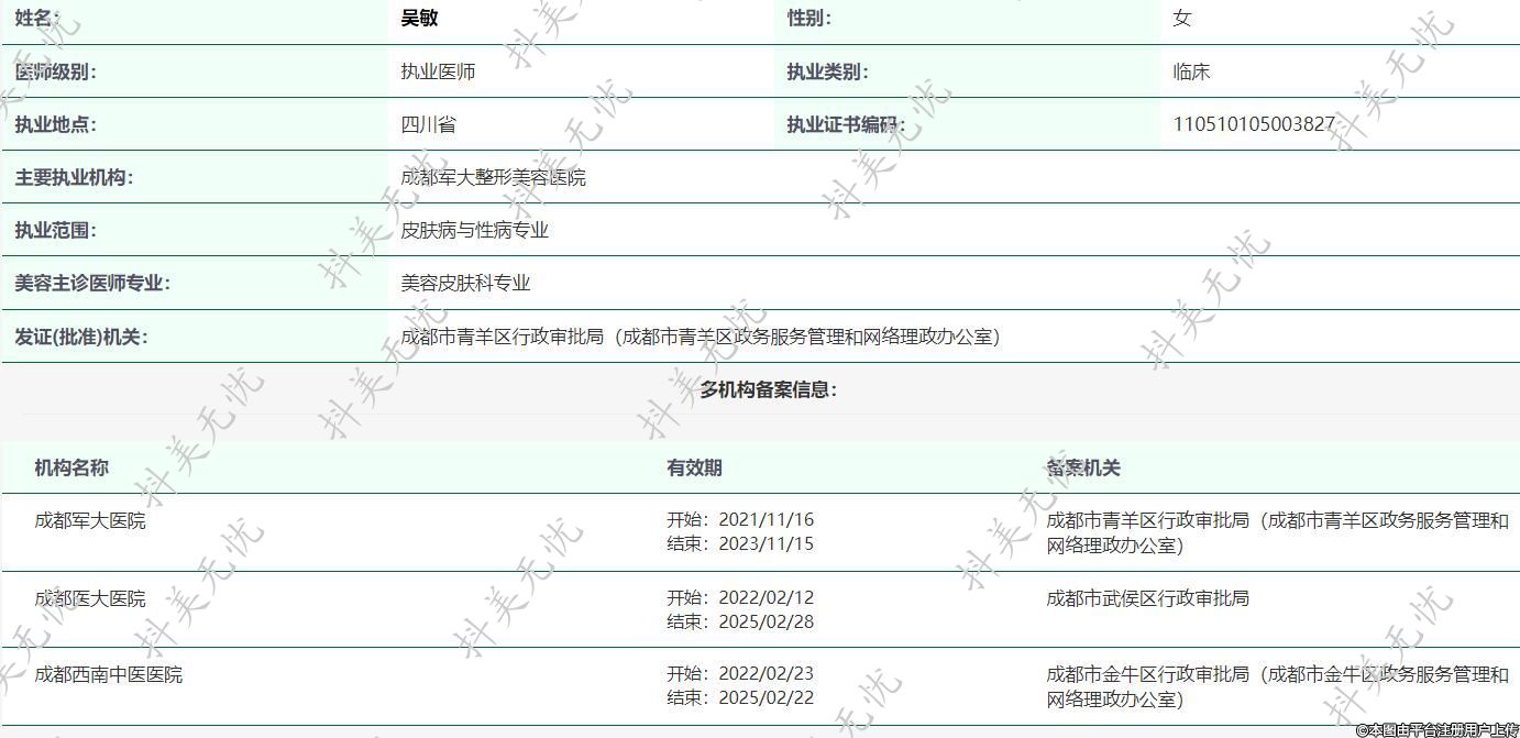 主要执业机构:成都军大整形美容医院