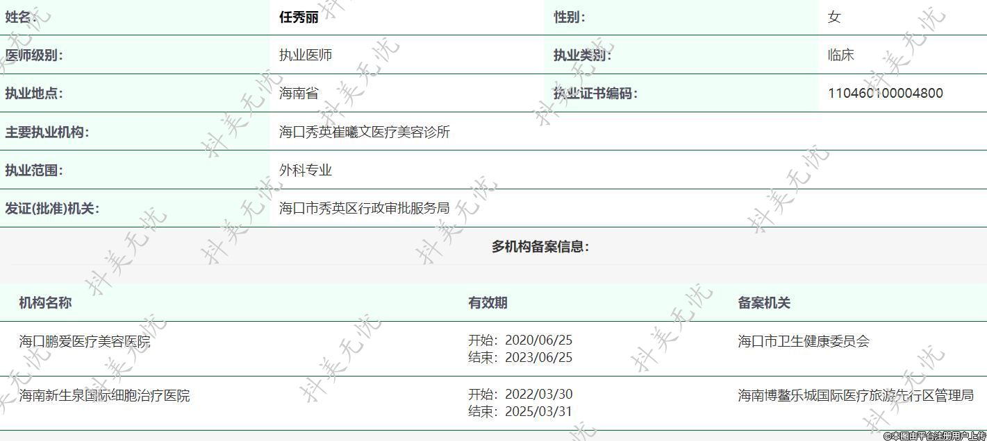 主要执业机构:海口秀英崔曦文医疗美容诊所