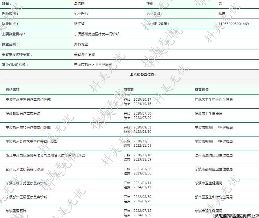 主要执业机构:宁波鄞州美塑医疗美容门诊部