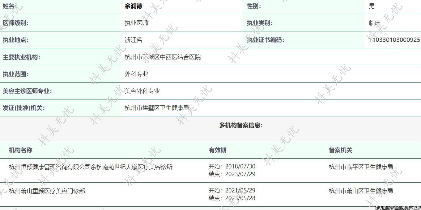 机构名称:杭州恒颜健康管理咨询有限公司余杭南苑世纪大道医疗美容诊所